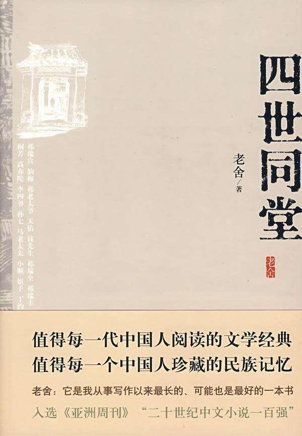 3.《四世同堂》,老舍。祁家人有着四世同堂的大家族,但是在抗战和北平陷落的背景下,他们的生活却不见得那么容易,老舍为我们形象的描绘了小羊圈胡同各色人等的生死、荣辱和兴衰,如史诗一般,向我展现了二战时期中国人民为抗日战争所做出的可歌可泣的英雄故事。