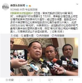 据泰媒7月9日消息,泰国副总理巴逸上将在总理府就普吉沉船事件对外宣称:经过警方调查,翻船造成40多名中国游客死亡的普吉租船旅行社幕后老板为中国人,此旅行团为非法的“零元团”。