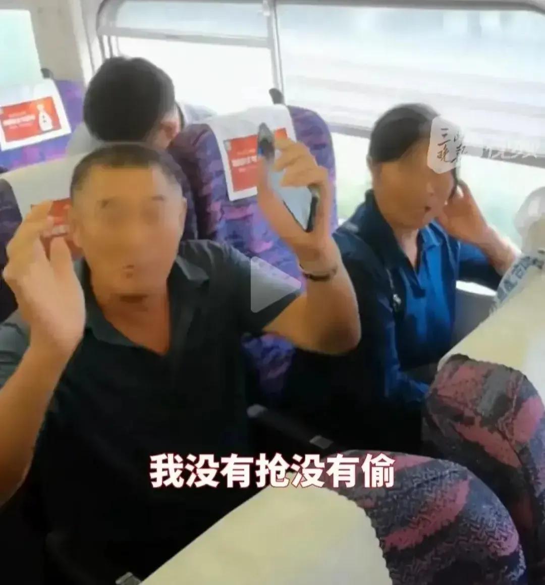 第三步,两位老人说他们年龄大了不识字,带的东西又多,就坐在这里了,要两位女孩到别的空座位上去坐,而两位女孩据理力争,就是要坐到属于自己的座位上,旁边的乘客也劝说大爷大妈不要霸占别人的座位,可大爷说他一没偷二没抢,今天就坐在这个座位不走了。