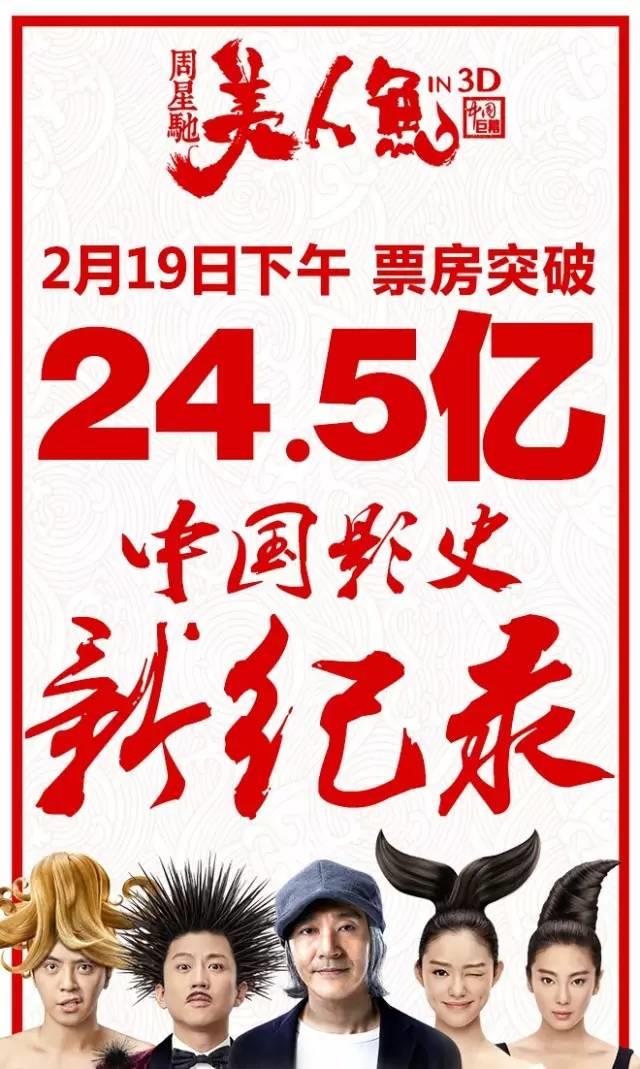 周星驰的《美人鱼》票房顺利突破了24.5亿元,