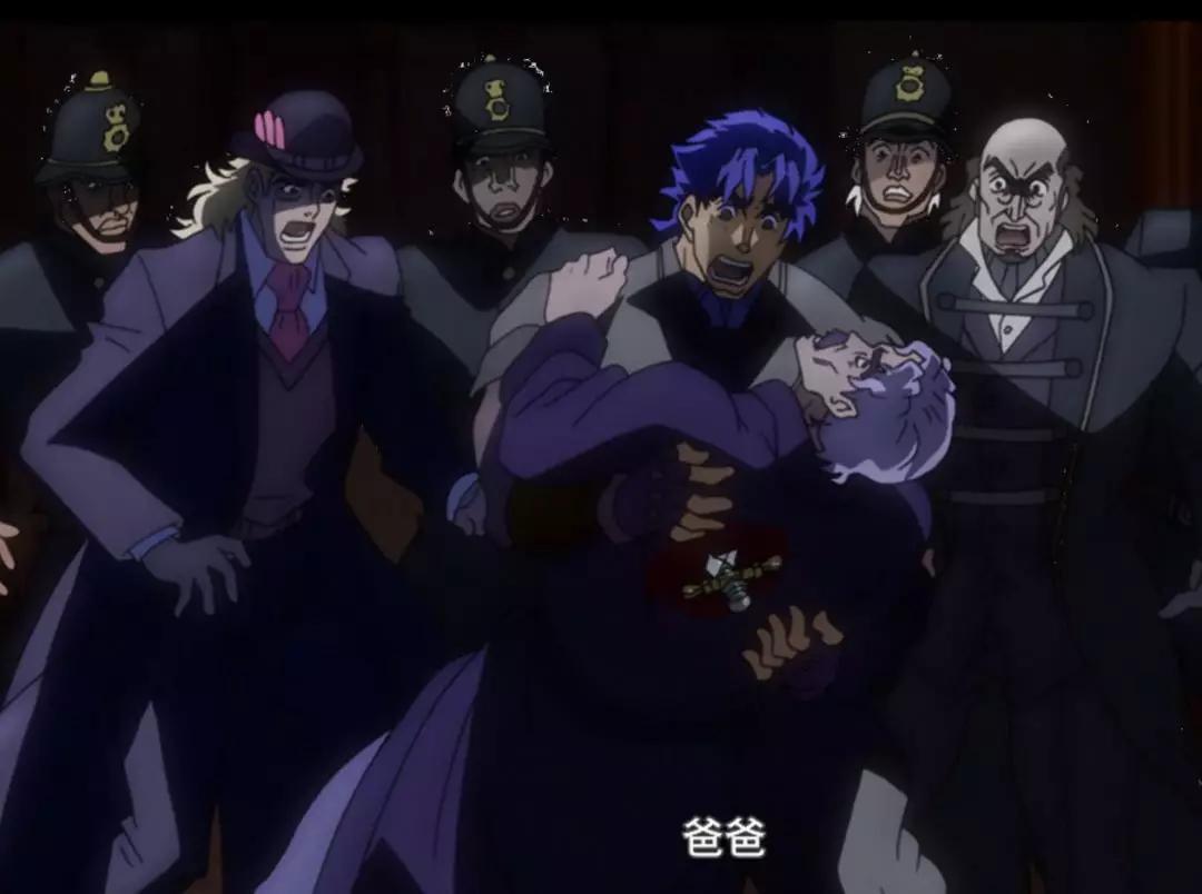这里说下为什么会被调侃为乔家一生一次的瞬移呢,其实是之前DIO说出这句话的时候,上一个零乔(大乔父亲的意思)的画面,其实是离了一段距离的,但是在DIO刺出匕首的时候人瞬间就已经到了大乔的面前,把刺向大乔的匕首用自己的替身拦截了下来。