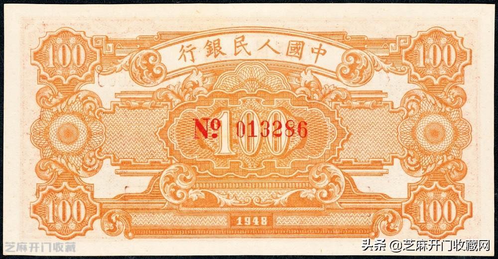 4:民国三十七年(1948年)第一套人民币“万寿山”壹佰圆,双面票样,PMG 66 EPQ,成交价格: RMB 26450