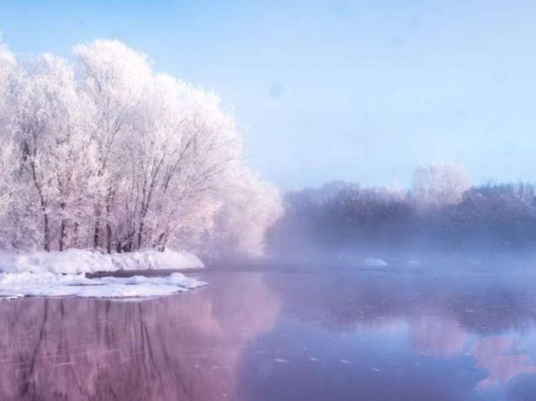 遍布严霜寒意浓,溪洼河泽正冰封