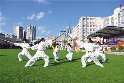 宣威六中武术队在运动场训练