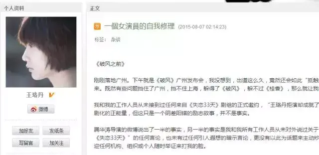 起初,王珞丹首度在博客上宣布文章《一个女演员的自我修理》,侧面做出回应:“比起两个女演员自己,片子和作品更值得被存眷。”她还评估说:“咱们不是非此即彼的仇人,而是能够各自出色的斗争同仁。”白百何随后转发这条微博并表示:“感谢王老师对我的确定和勉励!我会继承好好认真的演戏。”