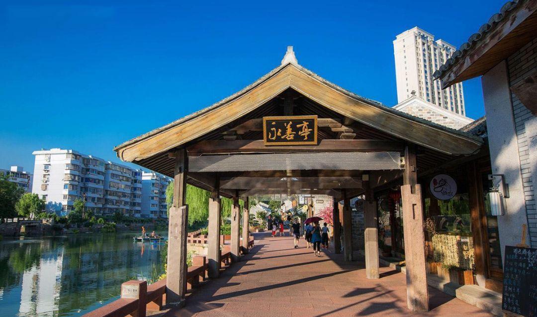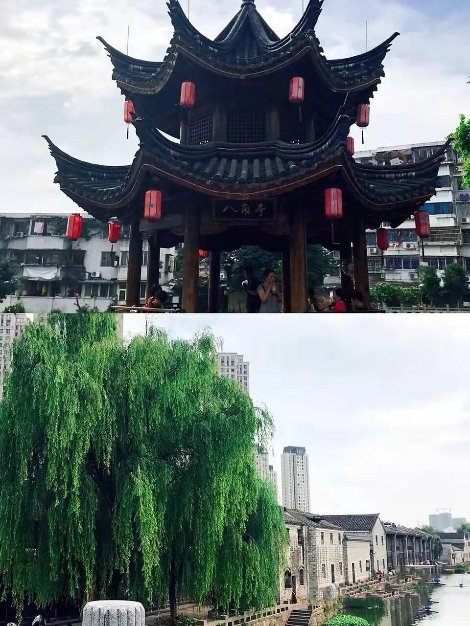 一河、一桥、一亭、一台之间,密布着大大小小的许多青墙黛瓦的雕花小楼,移步换景,都是旧时模样,让人仿佛行走在清明上河图之中