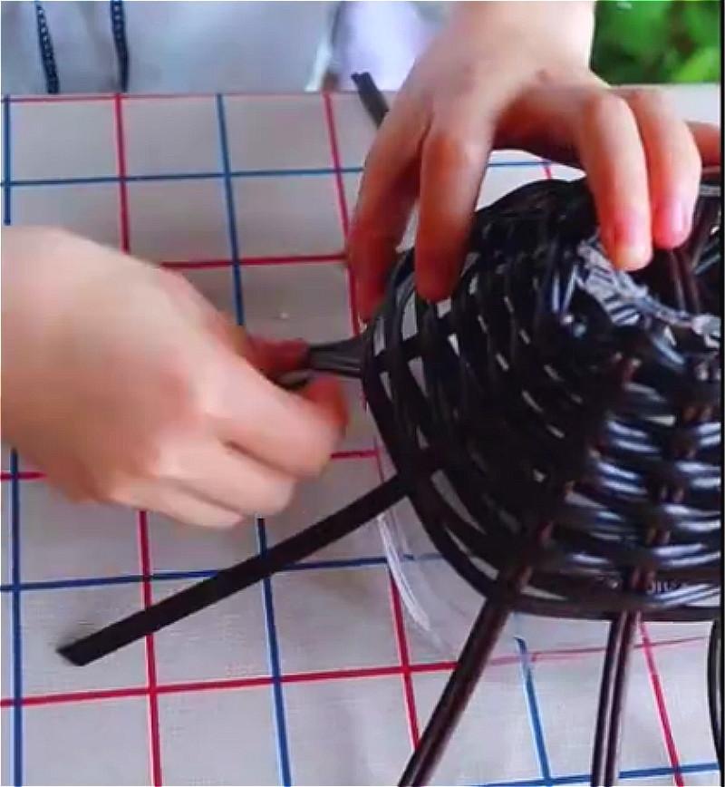 第六步:拿一根长的藤条从底部一上一下地压着往上编