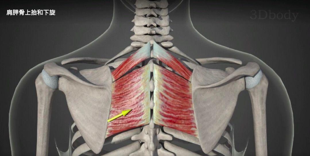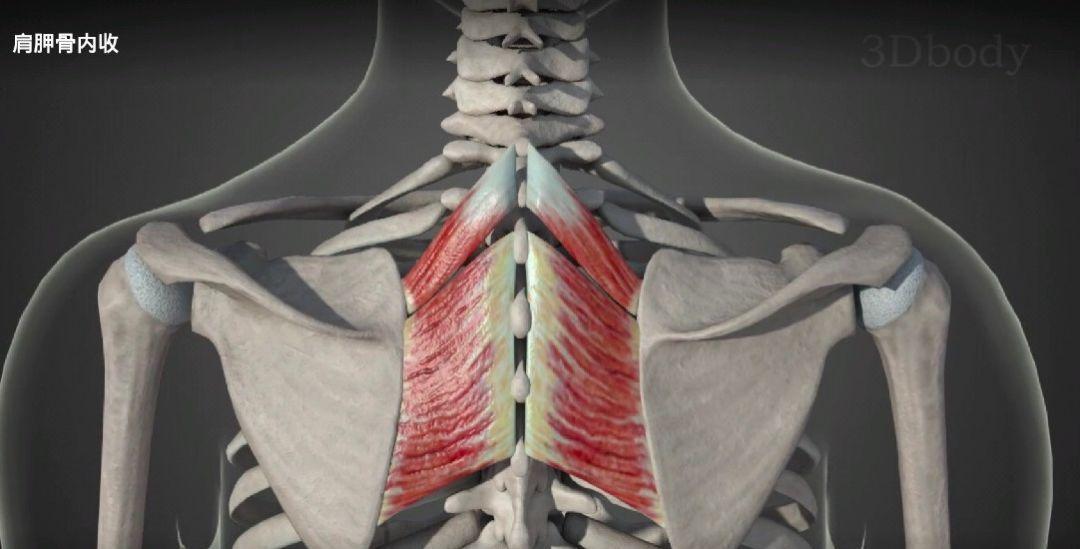 主要作用:拉肩胛骨向中线靠拢,上部纤维提肩胛骨,下部纤维降肩胛骨