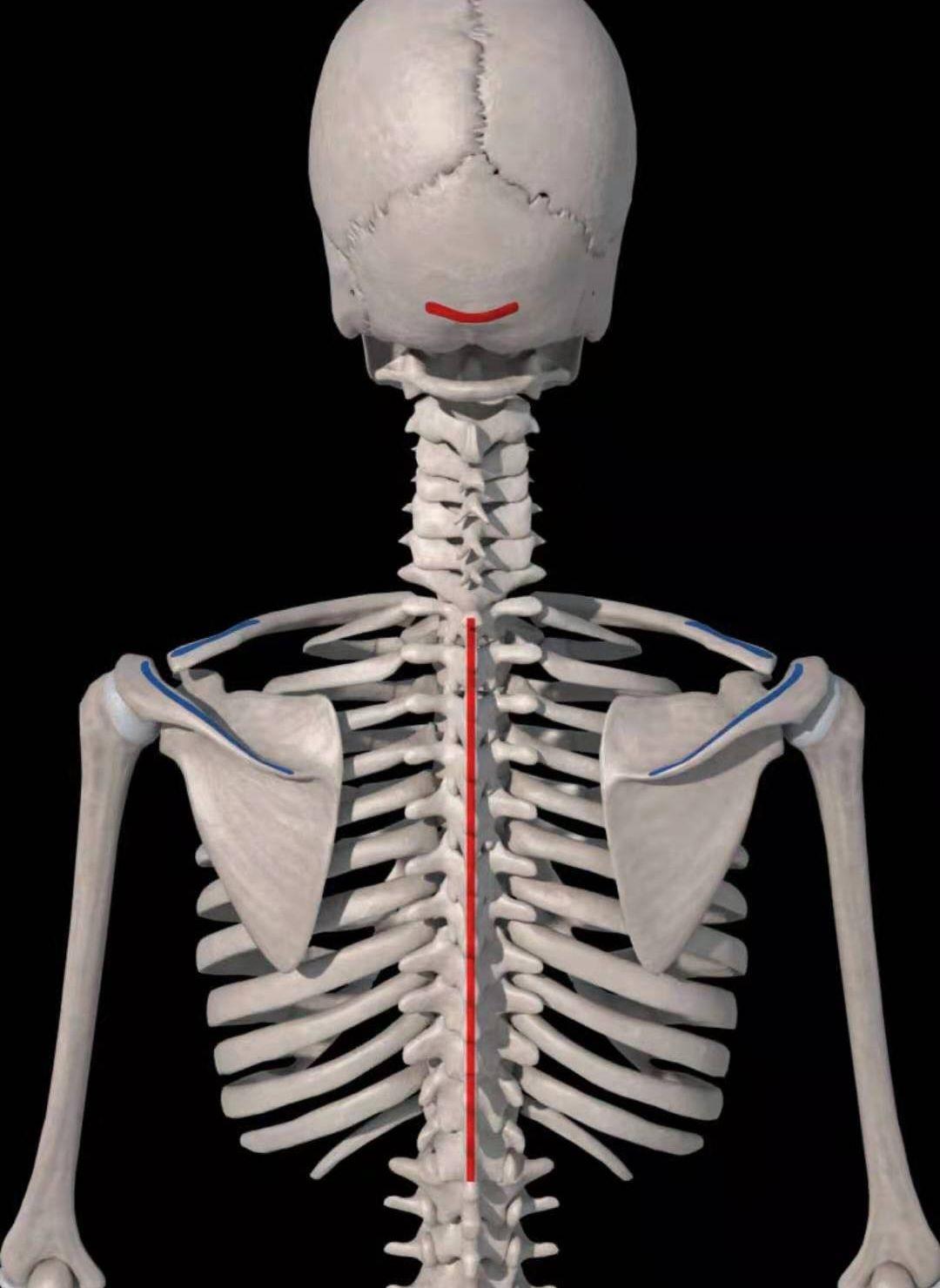 起点:上项线、枕外隆凸、项韧带、全部胸椎棘突