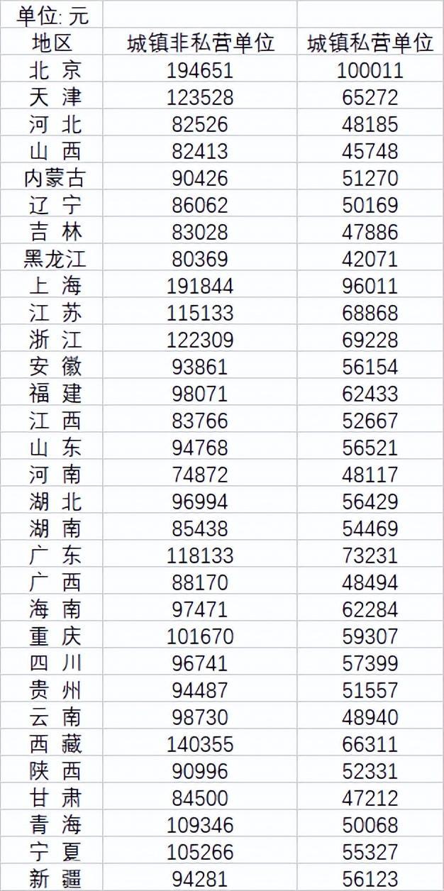 根据国家统计局的数据显示,非私营单位的工资水平一般来说都是高于私营单位的,其中有10个省市的非私营单位的年平均工资超过了10万元,其中北京、上海等地的年平均工资更是超过了19万元,将近20万元。