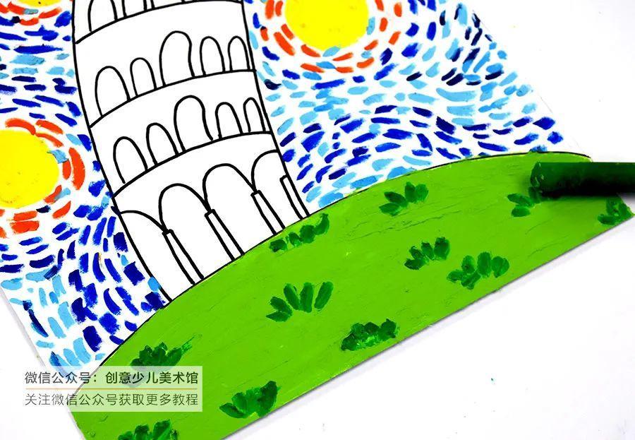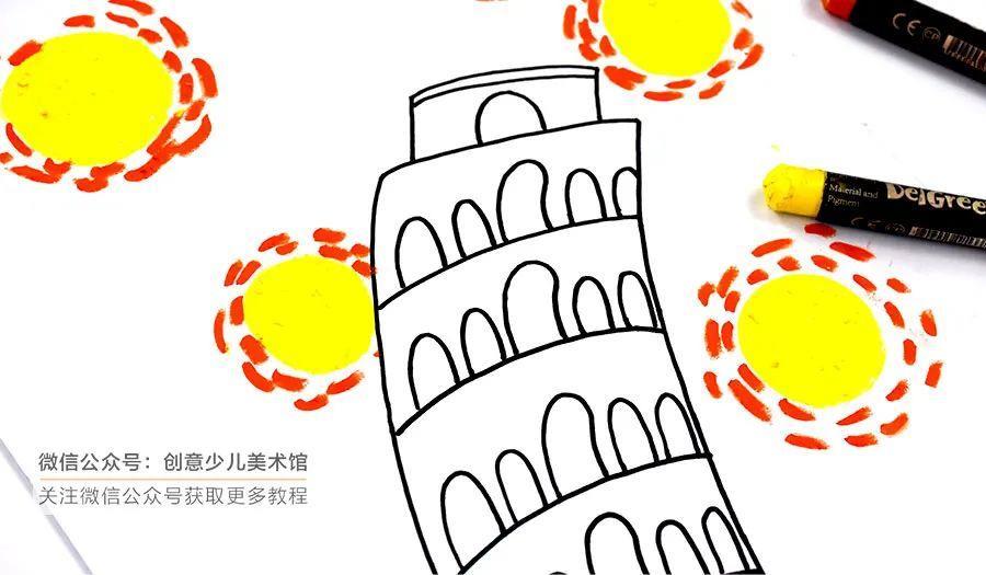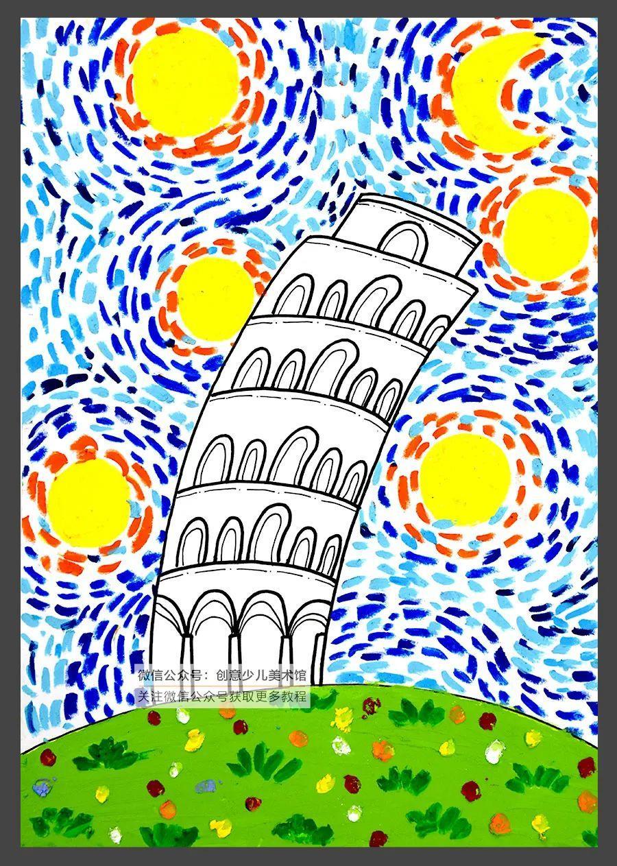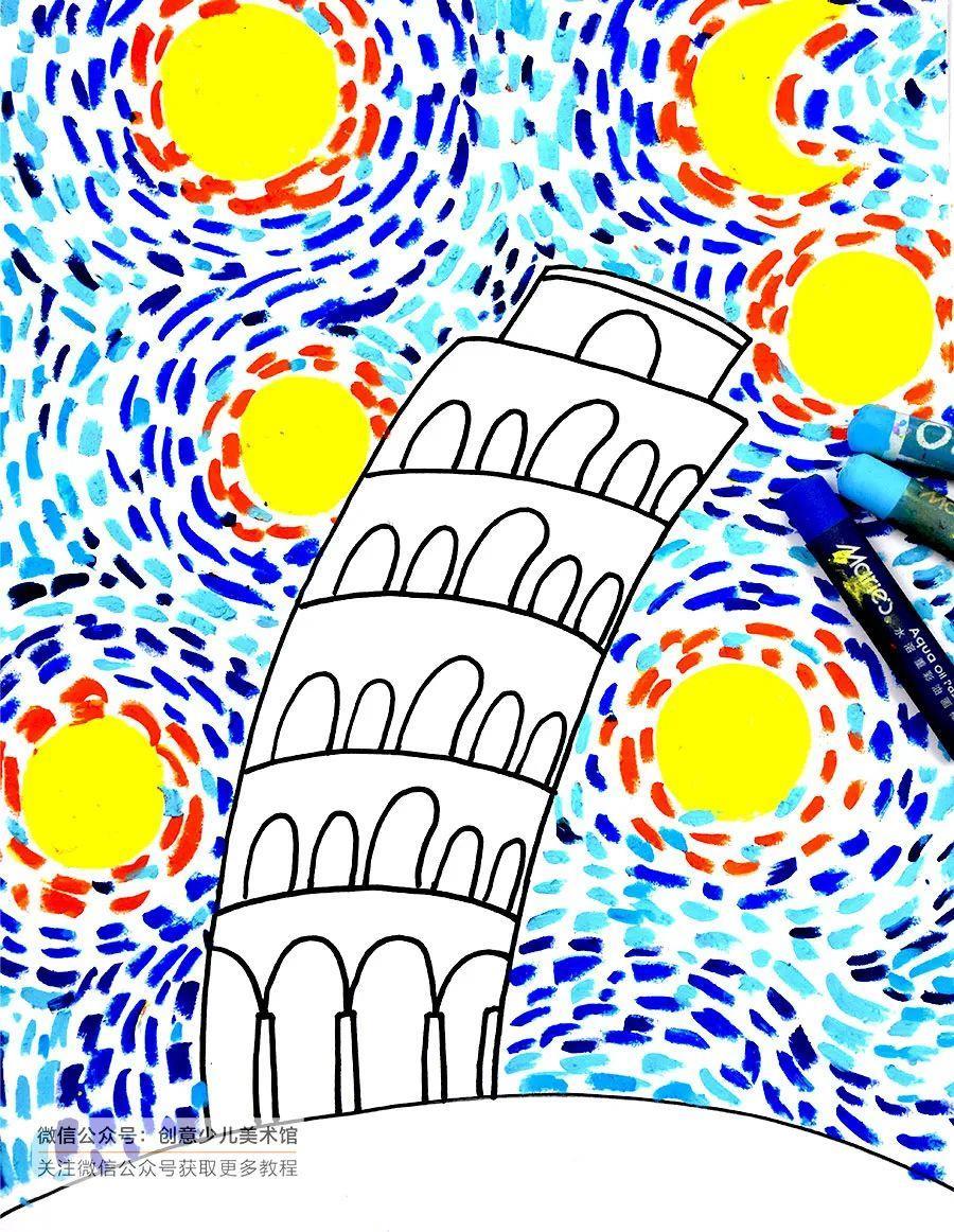 儿童画教程|星空下的比萨斜塔