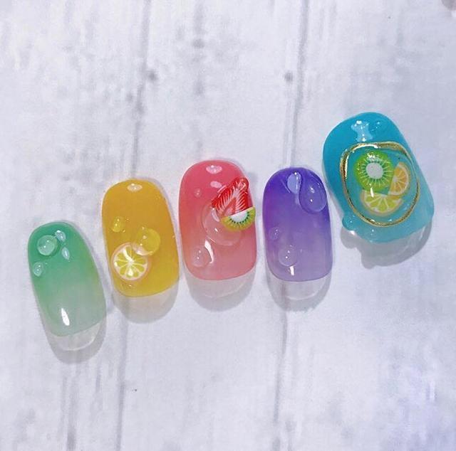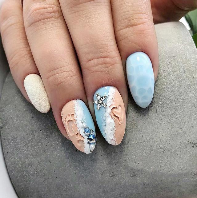 这款是自带水族箱的水柱美甲,看起来非常有立体感,即体现了夏日的清爽,而不失高贵优雅