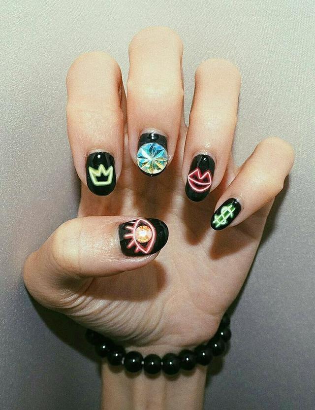 这款是蹦迪必备的夜光美甲哦,在夜店那些光线不是很好的地方,体现出了你的独特、个性~