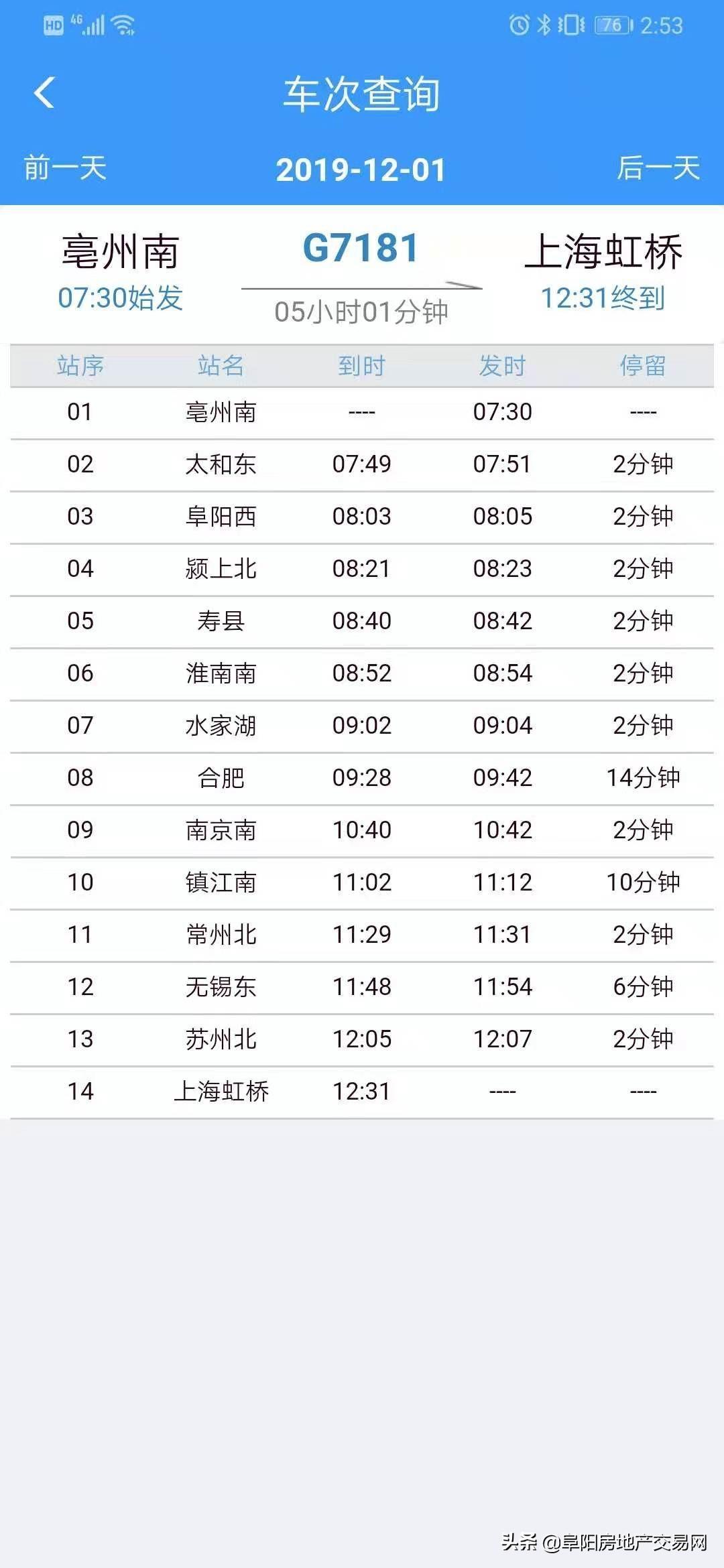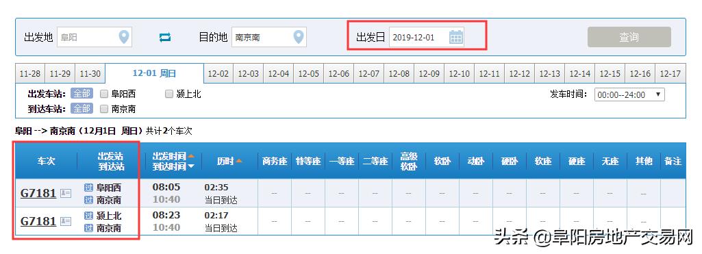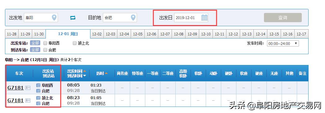 阜阳至各地高铁班次信息频繁变动