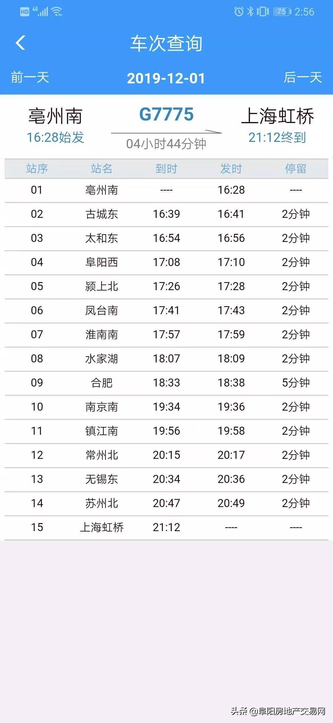 最新阜阳高铁班次信息,可到合肥、南京、苏州、无锡、上海、常州