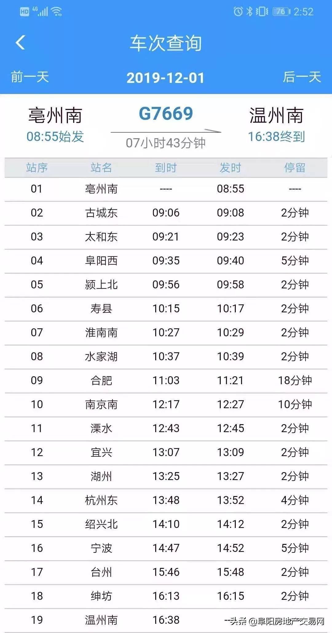 阜阳高铁班次表终于来了