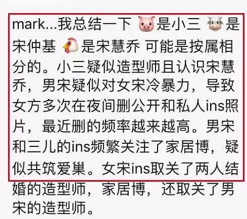 近日,有网友曝出疑似宋慧乔删照片的原因,是因为是宋仲基出轨造型师,还对宋慧乔进行冷暴力,随后导致宋慧乔多次在夜间删二人公开私人照片,不仅如此,宋仲基和小三造型师共同关注了家居博,疑似共筑爱巢,宋慧乔目前已经取关了二人结婚时的造型师。