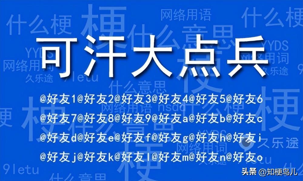 可汗大点兵这个梗是描述在看到一个有趣的视频后,大批量的艾特@好友的行为: