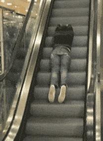妹纸,谁惹你生气了,躺在电梯上不起来