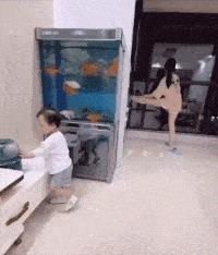 压腿动作要从娃娃抓起。