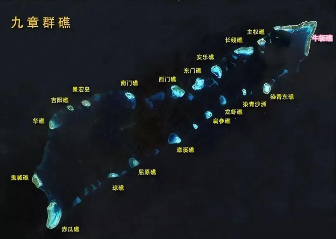 九章群礁的20多座岛礁中,赤瓜岛、东门岛、西门礁、南门礁、牛轭礁等均为我国控制,在整个九章群礁,我国目前只有赤瓜和东门两个驻军基地,赤瓜岛位于九章群礁最西部,牛轭礁位于最东端,加上中部据守的东门岛,形成了首尾相接,三点布控的态势,上面建有军营、综合楼码头、直升机停机坪、灯塔、发电和海水淡化等设施。