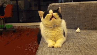 当猫咪遇到陌生的人和环境或感到压力大的时候,它就会大叫,而且会夹着尾巴,表示不安。