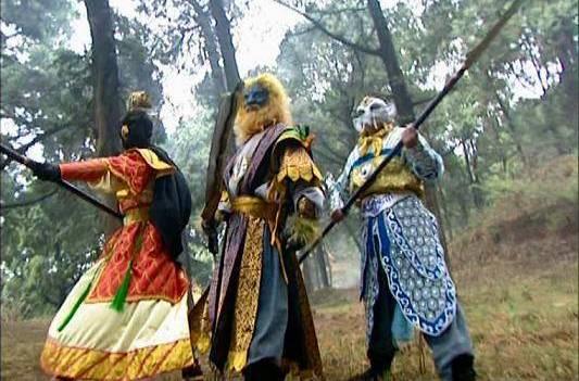 我想大家基本上都看过电视剧《西游记》,里面有一集叫做狮驼岭遇阻,具体名称我也忘了,大概就这么个意思。电视里面狮驼岭三个大王的形象是这样的,如下图: