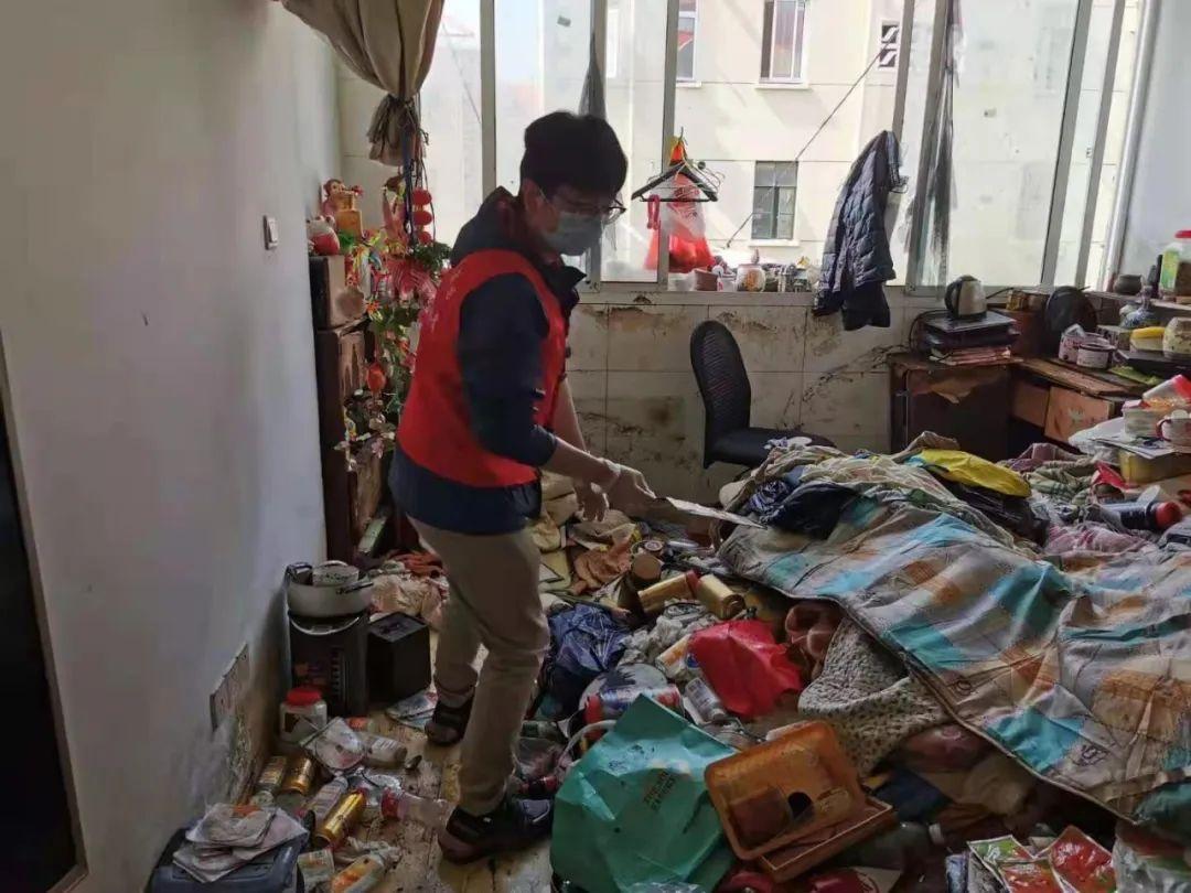 上门清理老人家中的垃圾,最多的一次,一共清理了两辆土方车的量;