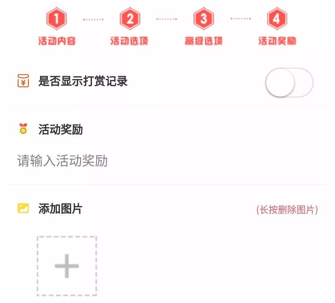 “是否显示打赏记录”由发起人自定义设置。