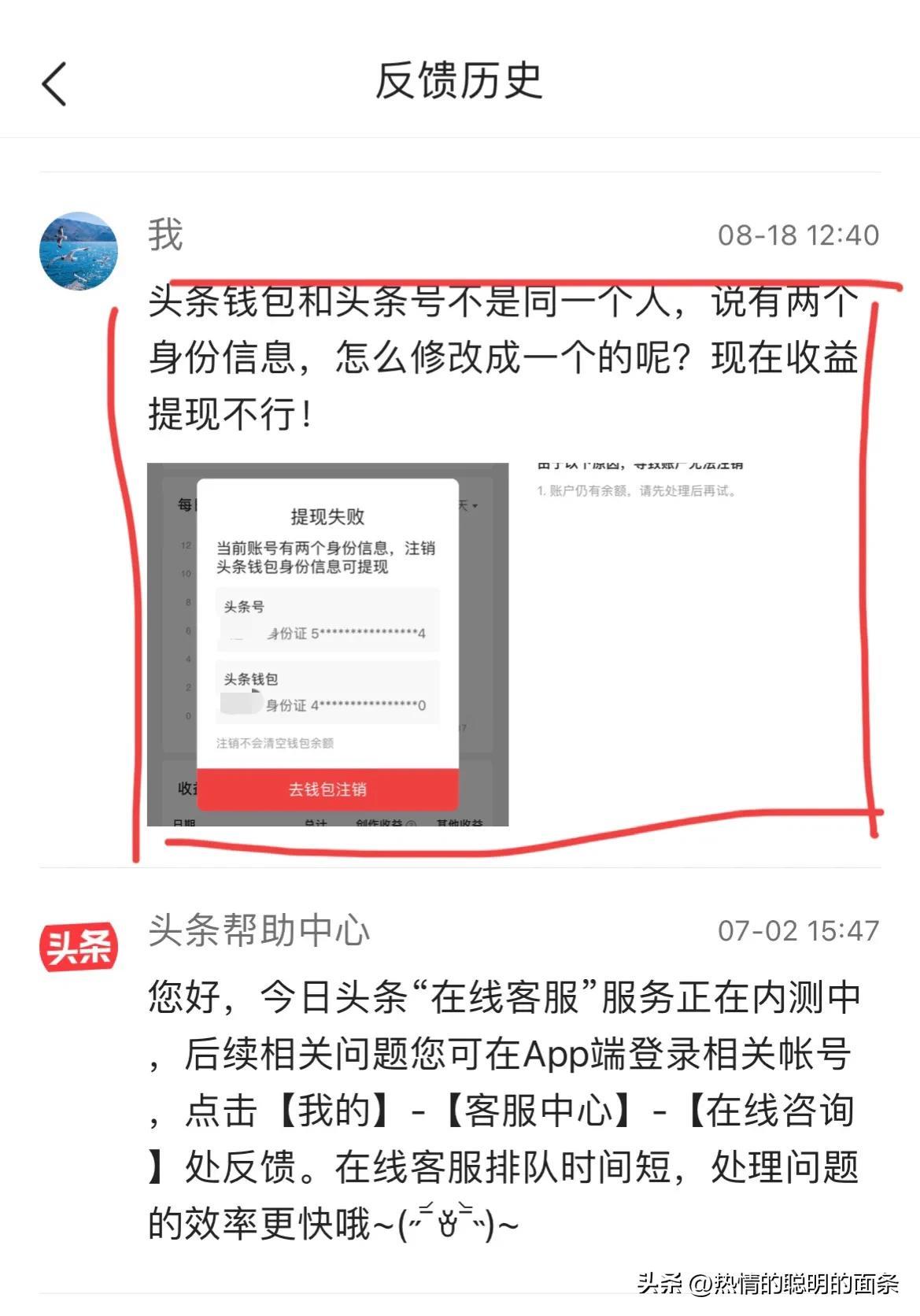 头条创作两个身份信息不能提现怎么办?