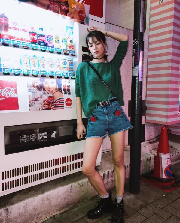 钟楚曦一身休闲装打扮,也时尚感满分,上身穿着一件绿色短袖,下身穿着牛仔短裤,斜跨一个小包包,自在惬意,简单而又不失格调。