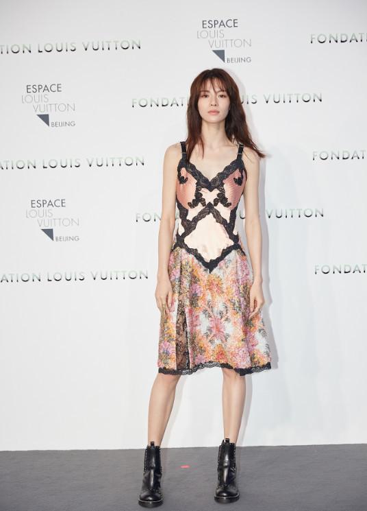 钟楚曦身穿一条吊带连衣裙,裙子的设计带点复古的味道,脚踩一双黑色马丁靴,帅气十足,吊带的设计,小露香肩和锁骨,性感满分。