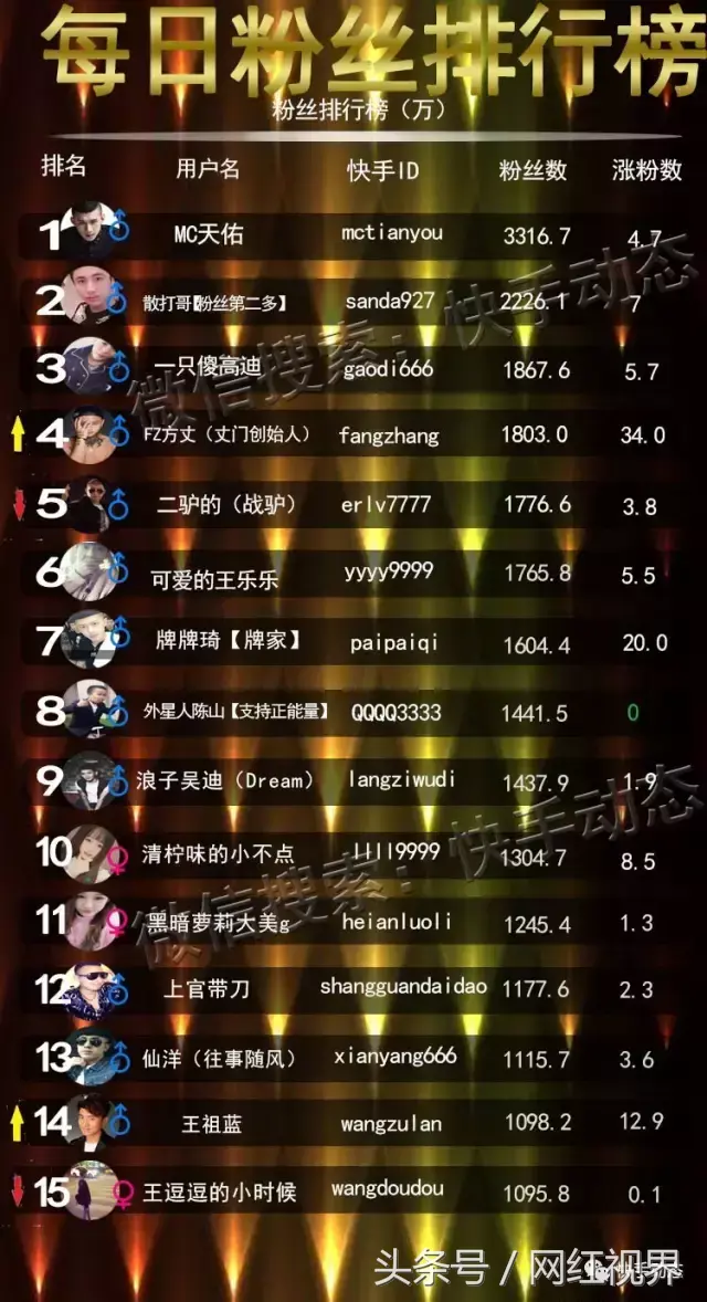 快手粉丝排行榜!天佑粉丝突破3300W,二驴被挤出前4。人气王竟是他?