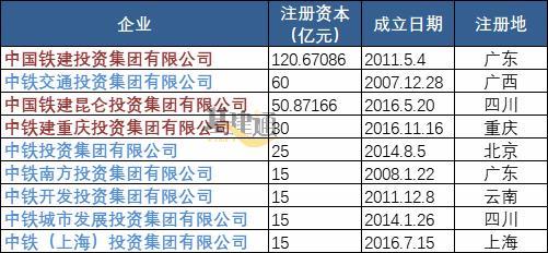 中铁、铁建的投资集团注册资本都不低,中国铁建投资集团的注册资本最高;这些投资集团都成立于2017年之前,而成立得较早的是中铁交通投资集团,成立于2007年。