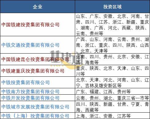 中铁、铁建的不同投资集团的投资区域不尽相同,侧重的区域也有所差异,比如:
