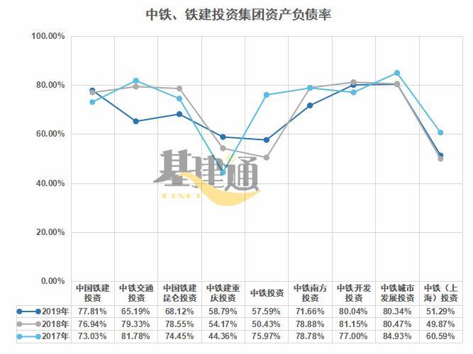 2019年,中铁(上海)投资集团、中铁投资集团、中铁建重庆投资集团资产负债率相对较低,都在60%以下。而资产负债率下降得最明显的是中铁交通投资集团、中国铁建昆仑投资集团。