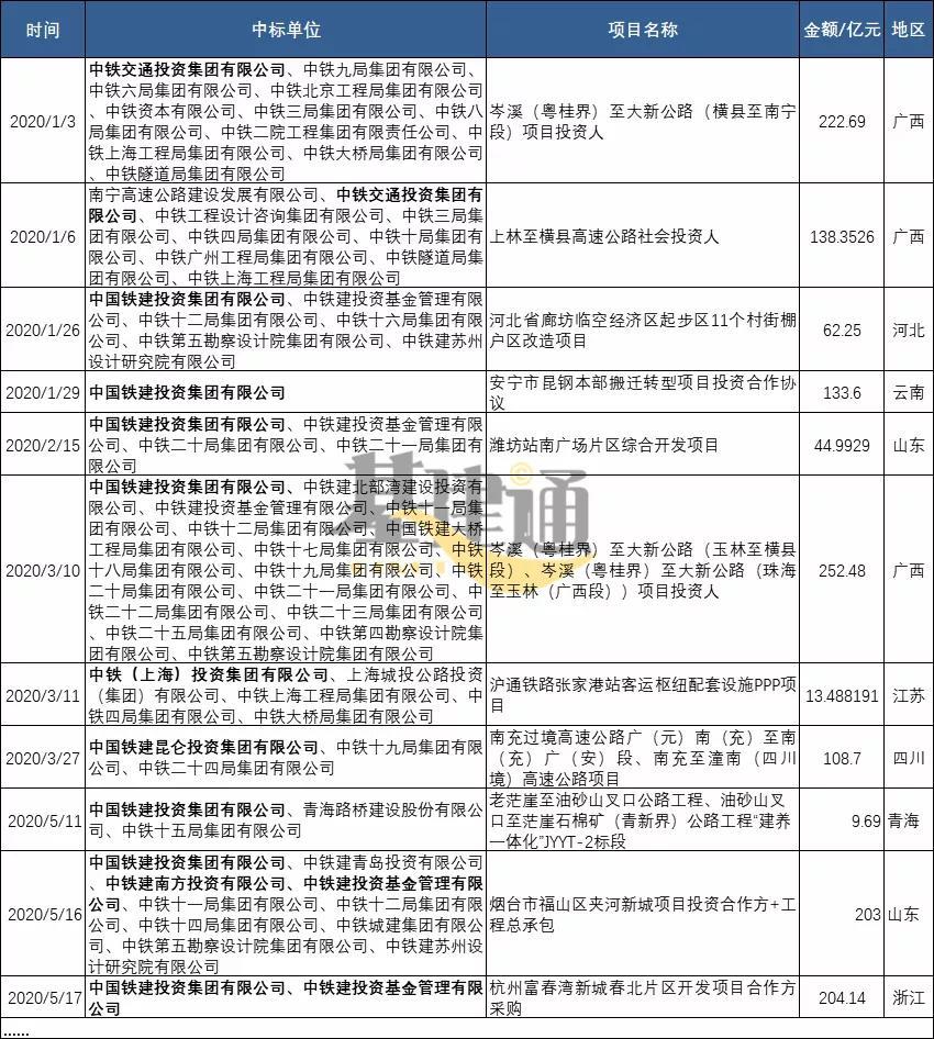 我们期待中铁、铁建所属投资集团2020年带来更好的成绩!