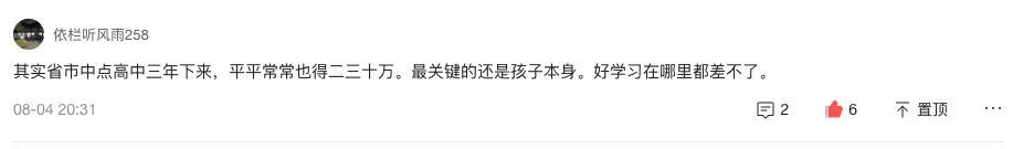 关于学费,昨天有人做了补充,高中一年是5万,可能班次不同,价格也不同,7月31日招生时每年学费是3万。除了学费,可能还有单独的补课费用。一年下来10多万。