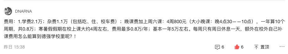 留言有上百条,质量也不一,选了几条做为参考,最后一张图呼乎上一个德强毕业生写的,写的算比较客观吧,一并参考。