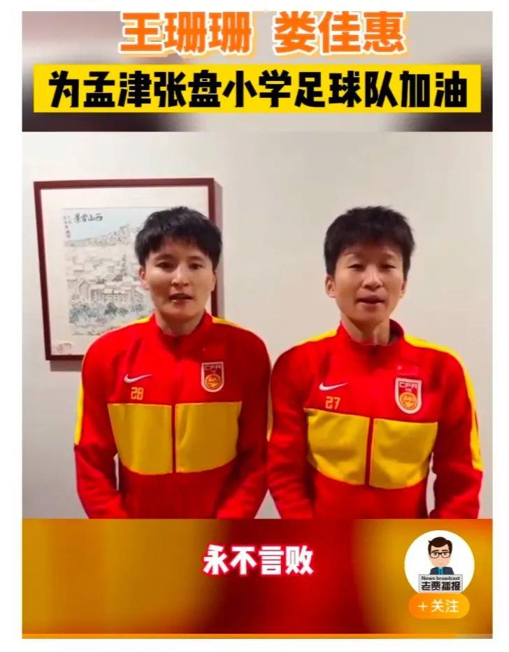 △2022年女足亚洲杯冠军成员娄佳慧、王珊珊给张盘小学少女足球队送上鼓励和祝福