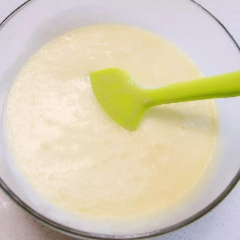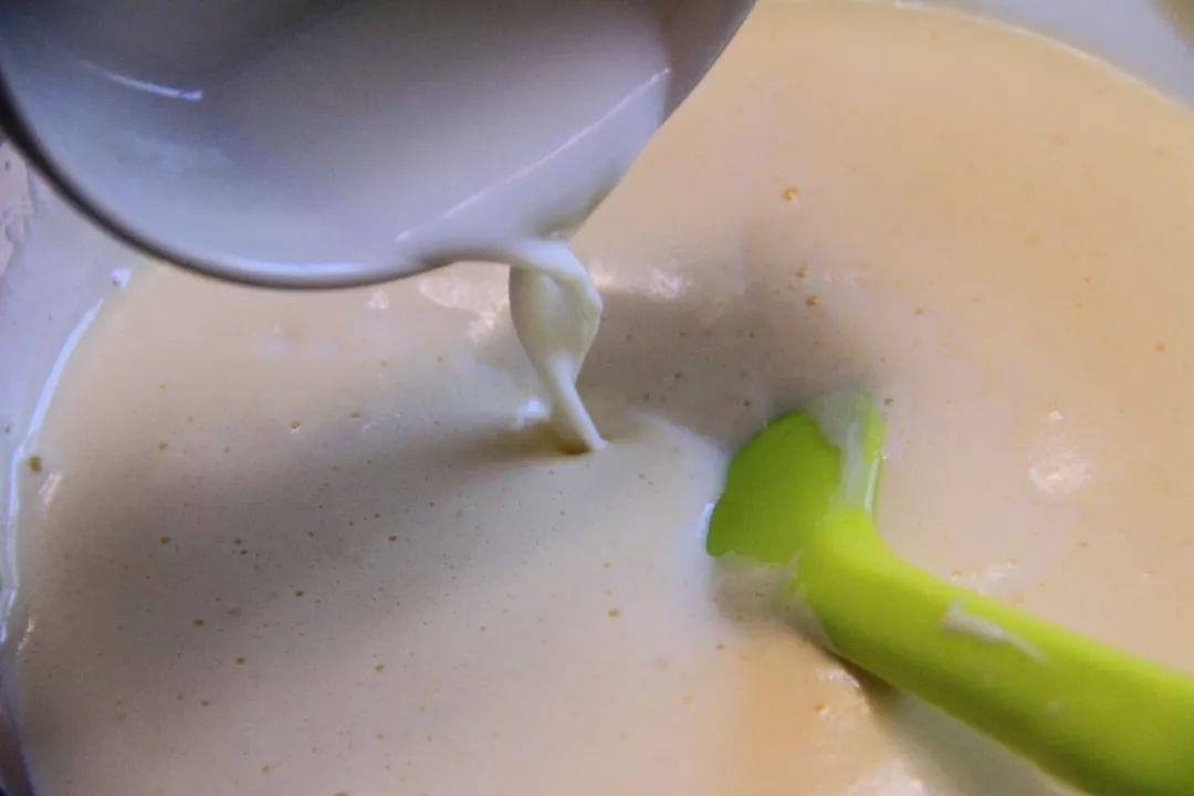 5、同样顺着刮刀加入牛奶,搅拌均匀。