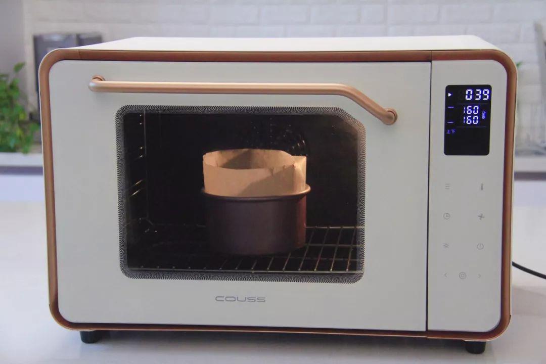 9、COUSS CO-750智能烤箱,提前上下火160度预热好,蛋糕放入的烤箱下层,烘烤35-40分钟烤至表面金黄即可。