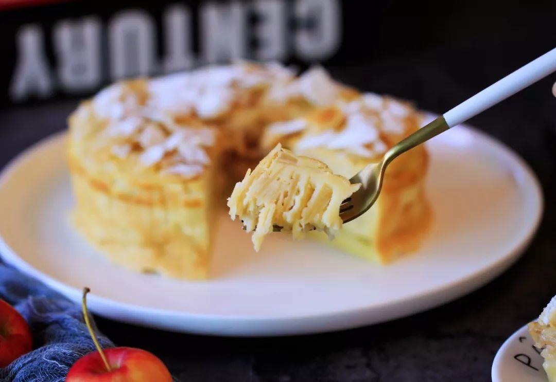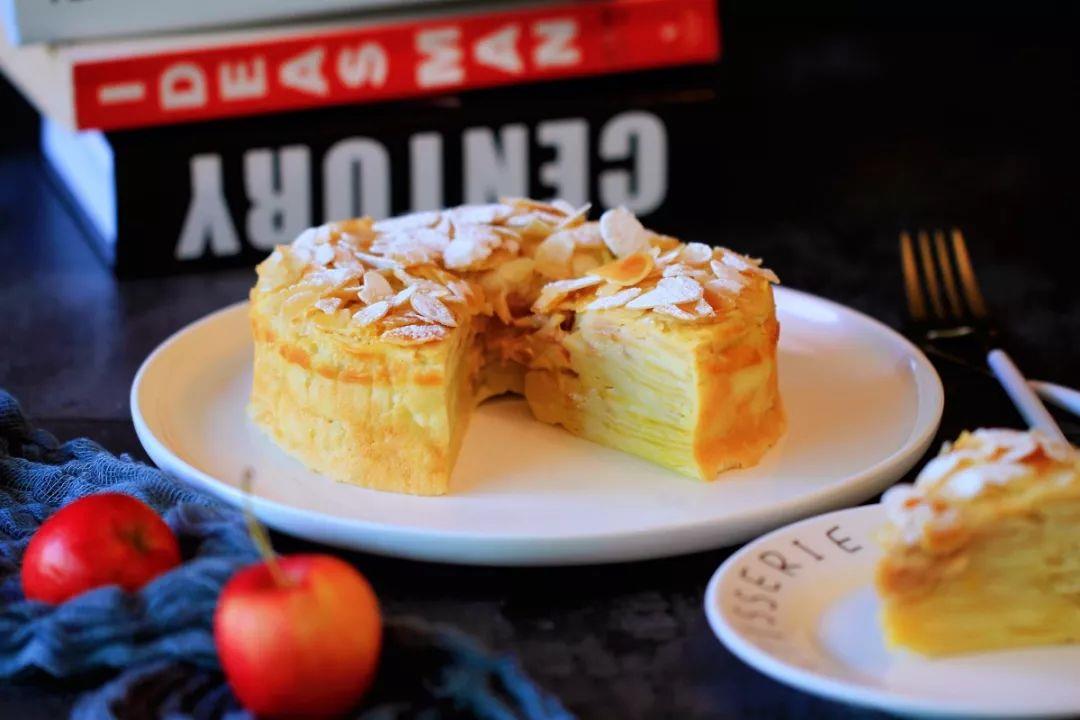 90%的苹果+10%的蛋糕,就是将蛋糕隐藏于苹果之中,切开后像纹理有点像千层蛋糕。
