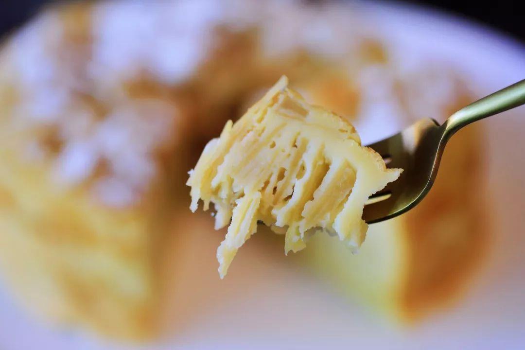 4、 蛋糕烤好后建议放凉再切,如果热切容易散开,也可以冷藏后再切件食用,冷藏后的口感也非常棒哦!