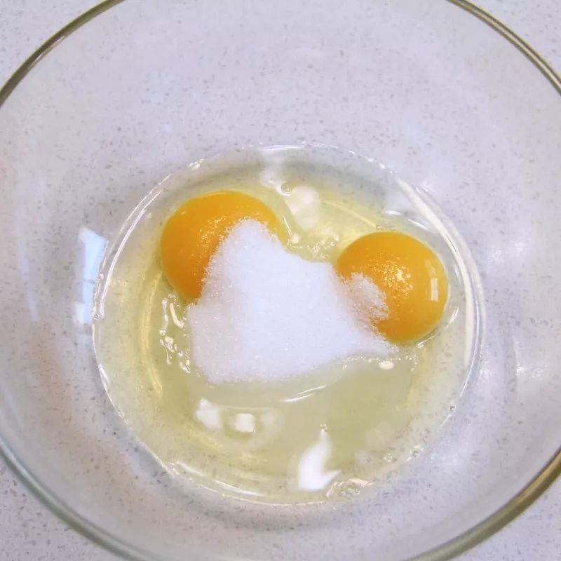 鸡蛋2个,细糖45g,盐1g,黄油30g,低筋面粉90g,牛奶120g,冰糖心的脆苹果2个,杏仁片适量,表面糖粉适量