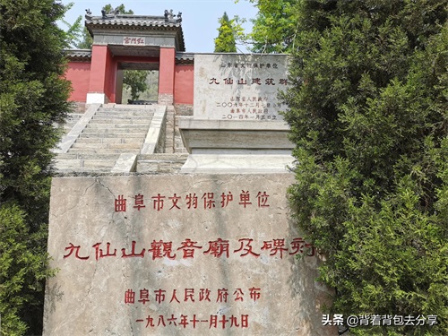 换取门票之后,因庙会期间,需要从红门宫进出,此处有省文保碑与市文保碑两块,风景区为国家三A级景区,位于曲阜市吴村镇,以景区简历来看,九仙山有着鲁南小泰山之美誉,与泰山寺庙大致相同,这里也是中国首个文化国际慢城建设的核心区域