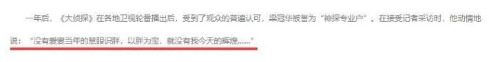 梁冠华在接受采访的时候谈到过妻子唐烨时,他如是讲到没有妻子的慧眼识胖,他可能没有如今的辉煌。