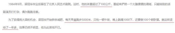 梁冠华不愿错过这次难得的机会,便开启了“疯狂减肥”的模式。在两个月的时间里,不吃主食,每一天都是黄瓜配西红柿,加上大量的运动,梁冠华这才成功减掉了32斤。