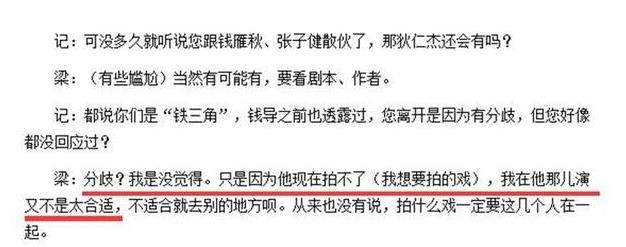 有记者曾问梁冠华“铁三角”散伙的事情,梁冠华表示双方只是想法不同而已。