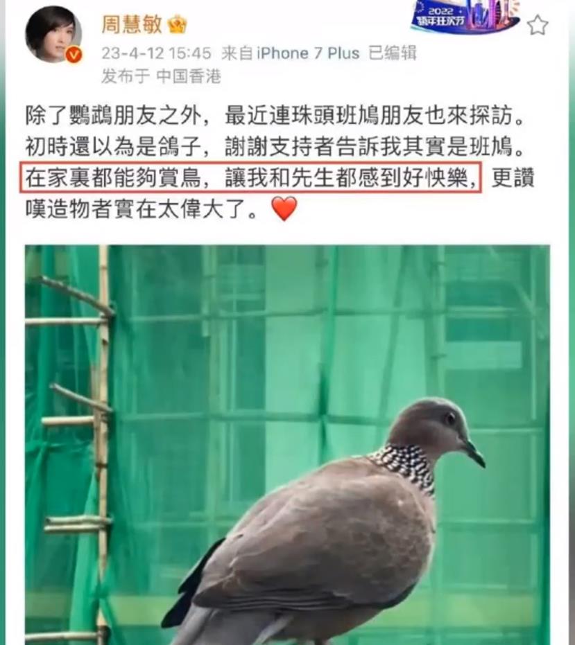 但是她发送的图片内容,是一只灰色的斑鸠站在阳台上。